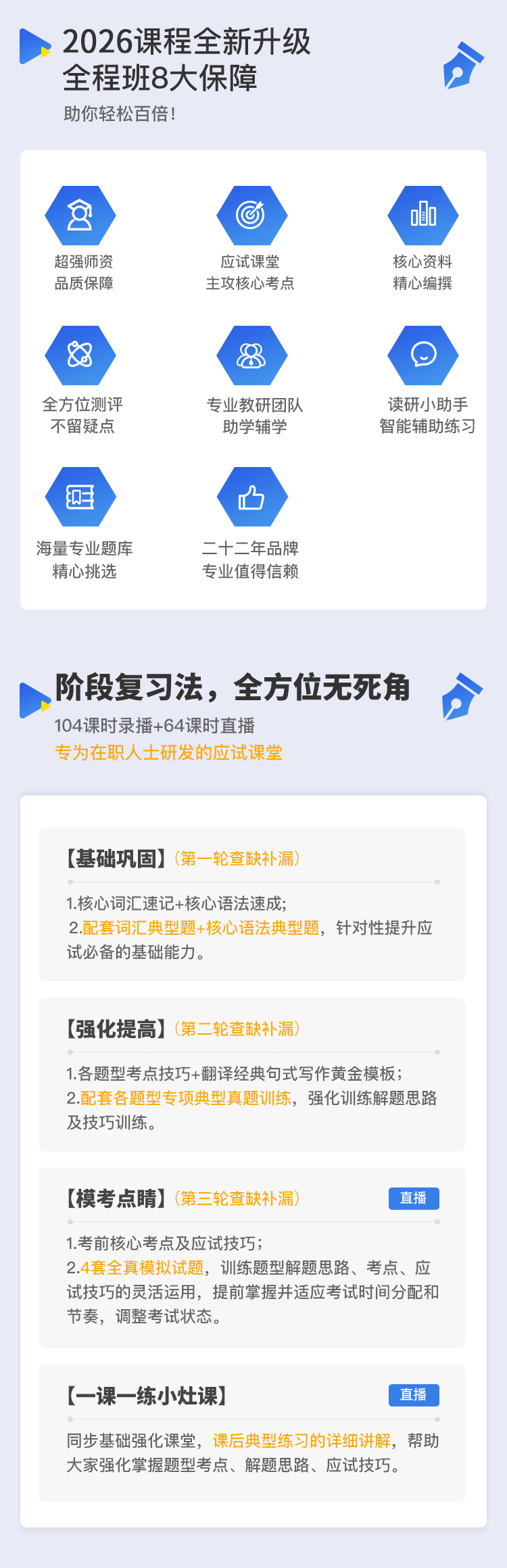 2026年同等学力人员申请硕士学位英语水平全国统一考试全程班【基础+强化提高+模考点睛+一课一练】